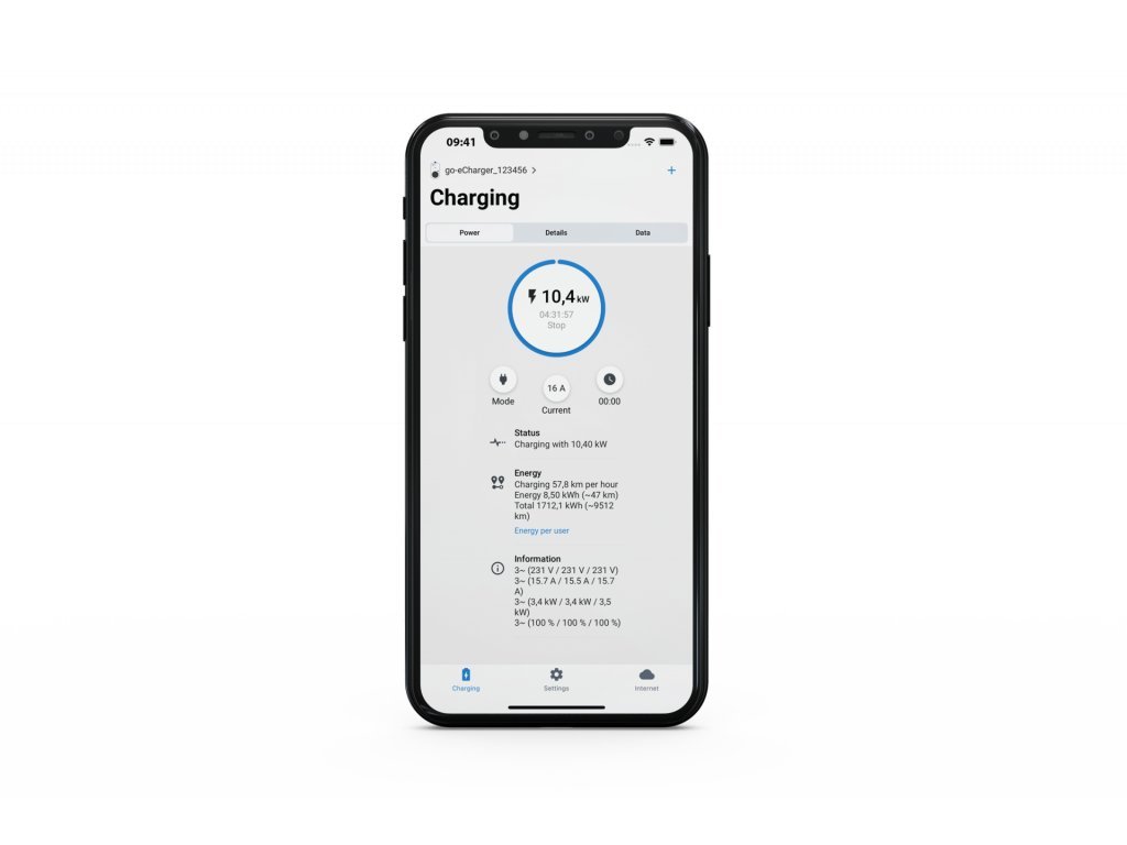 Výrobce nabízí bezplatnou aplikaci se spoustu přidaných hodnot. Pomocí aplikace můžete kontrolovat nabité kWh, regulovat nabíjecí proud, konfigurovat tlačítko nastavení na nabíjecí jednotce nebo zahájit nabíjení. Různá nastavení lze provést také prostřednictvím webového prohlížeče na Vašem počítači.